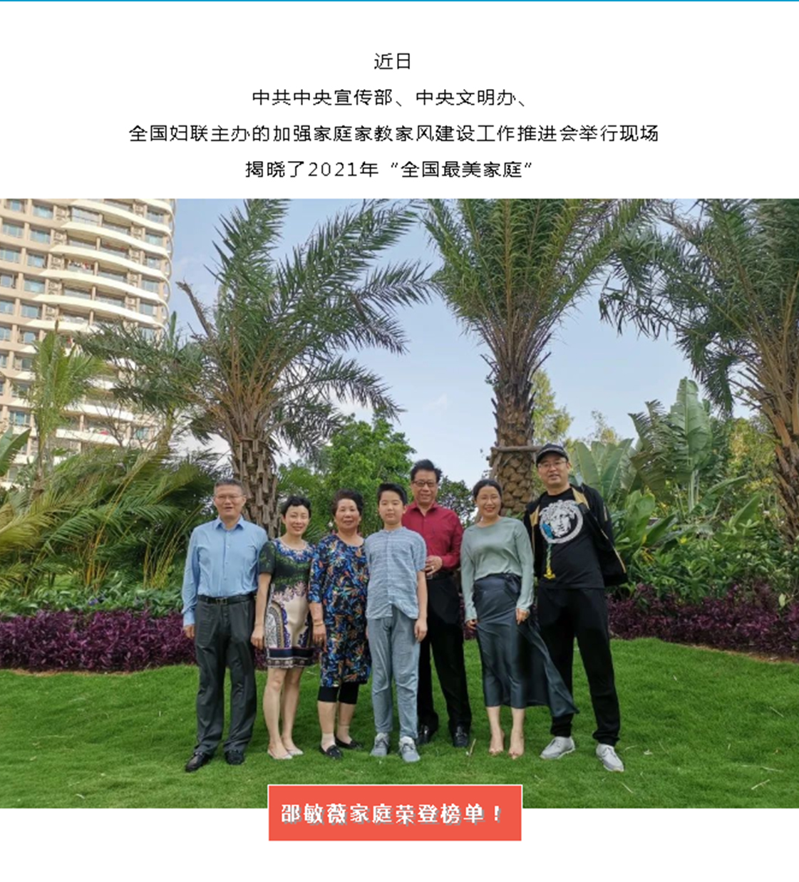 熱烈祝賀董事長邵敏薇一家獲評2021年全國“最美家庭”