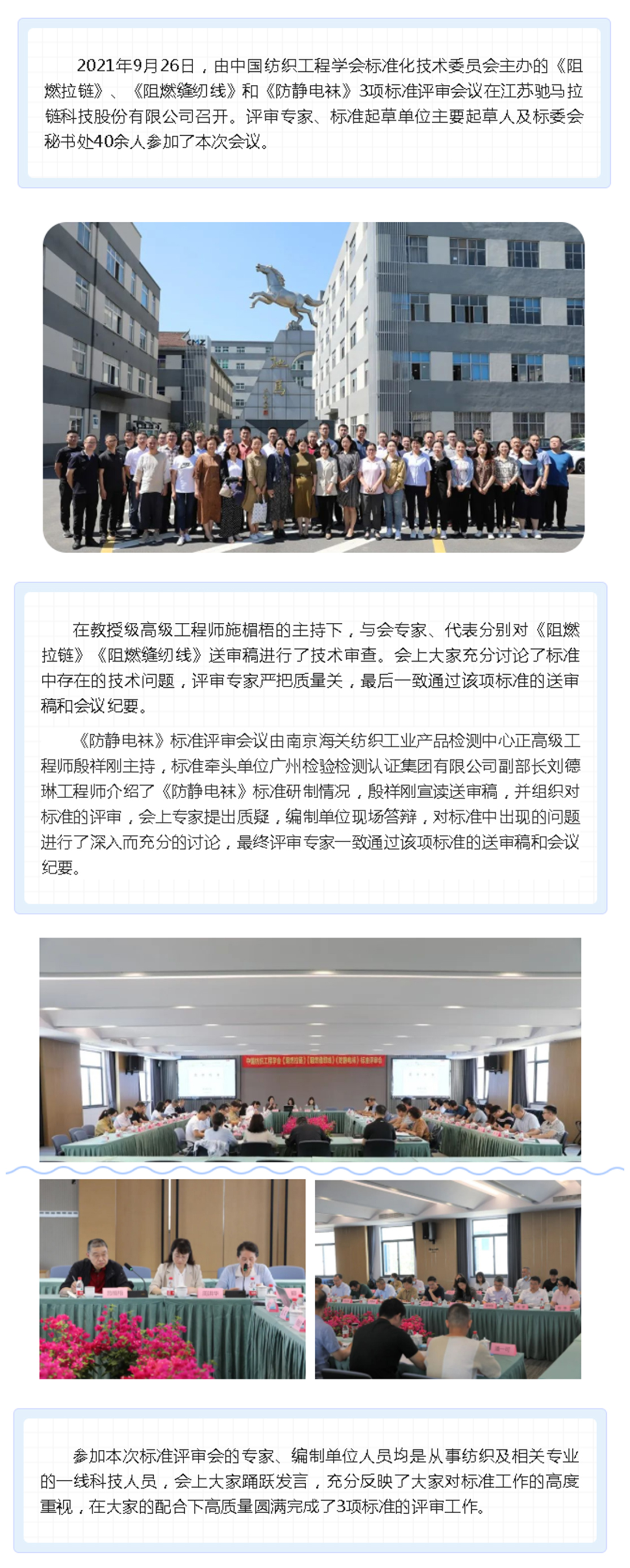 中國紡織學會標準評審會議在馳馬拉鏈順利召開