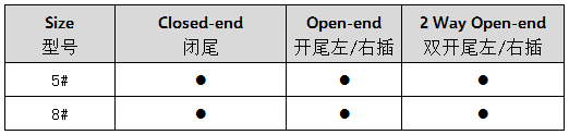 此款拉鏈采用塑料注塑成型的方式生產,選用的材料為聚甲醛(POM),此款牙型設計新穎,與金屬拉鏈相比較,優勢在于相同型號規格下的樹脂拉鏈重量要比金屬拉鏈輕得多。