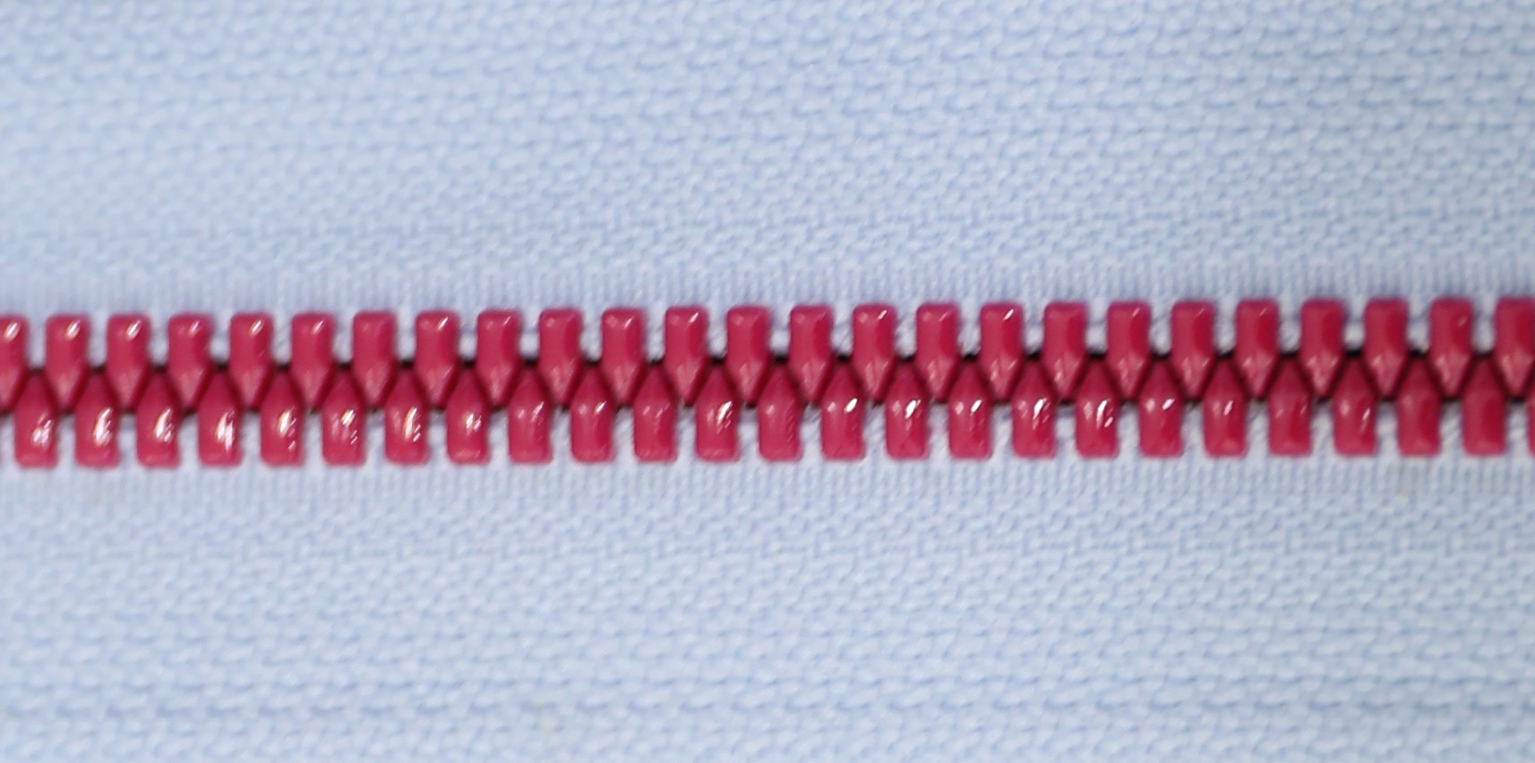 樹脂拉鏈采用塑料注塑成型的方式生產,選用的材料為聚甲醛(POM),在拉鏈的鏈牙表面增加不同的顏色形成,相比于普通拉鏈更富有炫彩效果。
