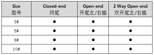 2. 各品種拉鏈均可做裝飾性防水拉鏈。具體型號、規格、顏色請聯系CMZ銷售了解更多。