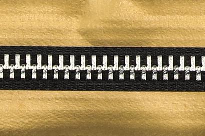 此款拉鏈具有金屬拉鏈的優良物理性能,其兩邊織帶,貼覆一層裝飾性防水膜,膜材具有多樣化,透明、亞光、閃金、皮感等,具有較強的裝飾性和一定的防潑濺功能。