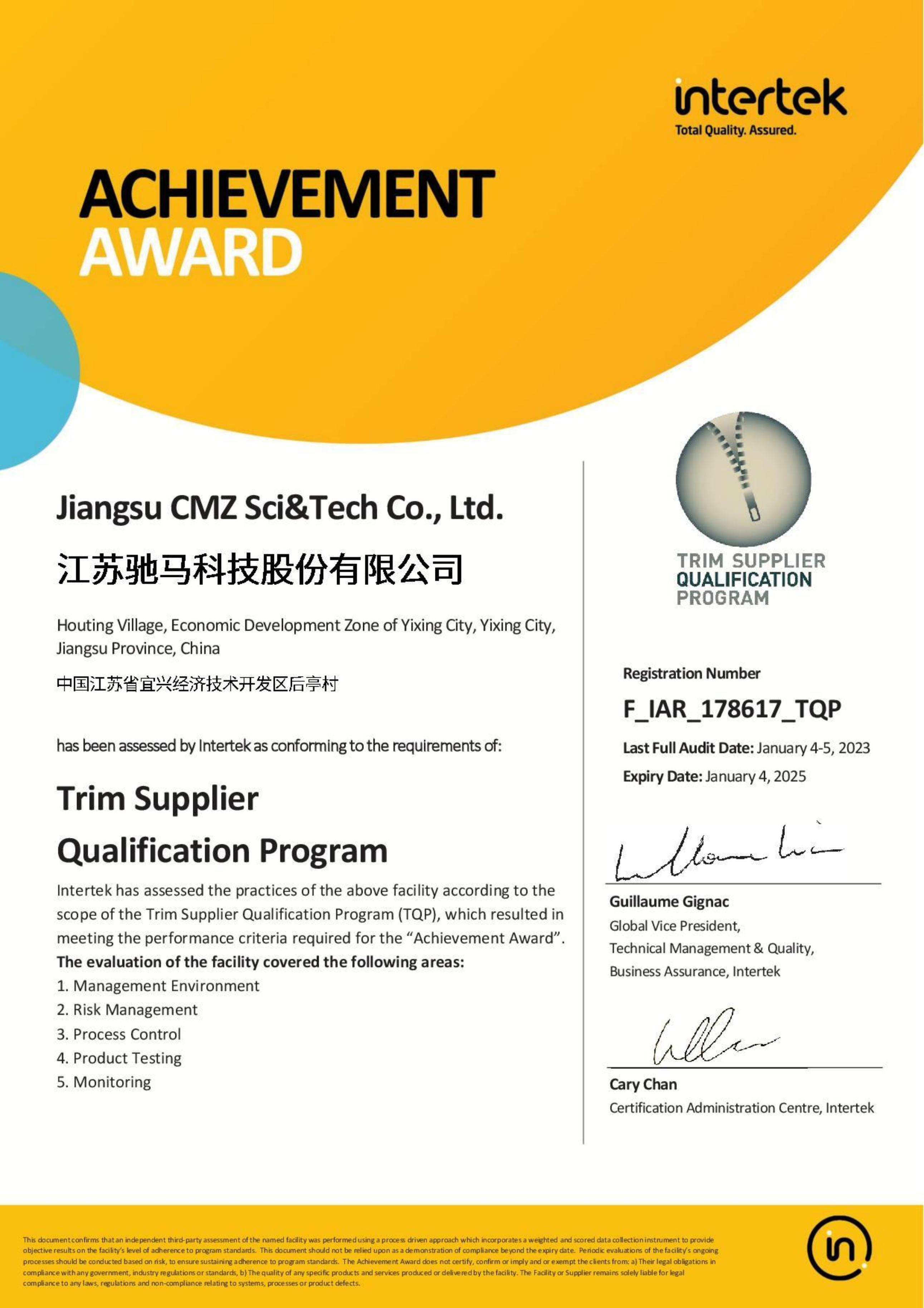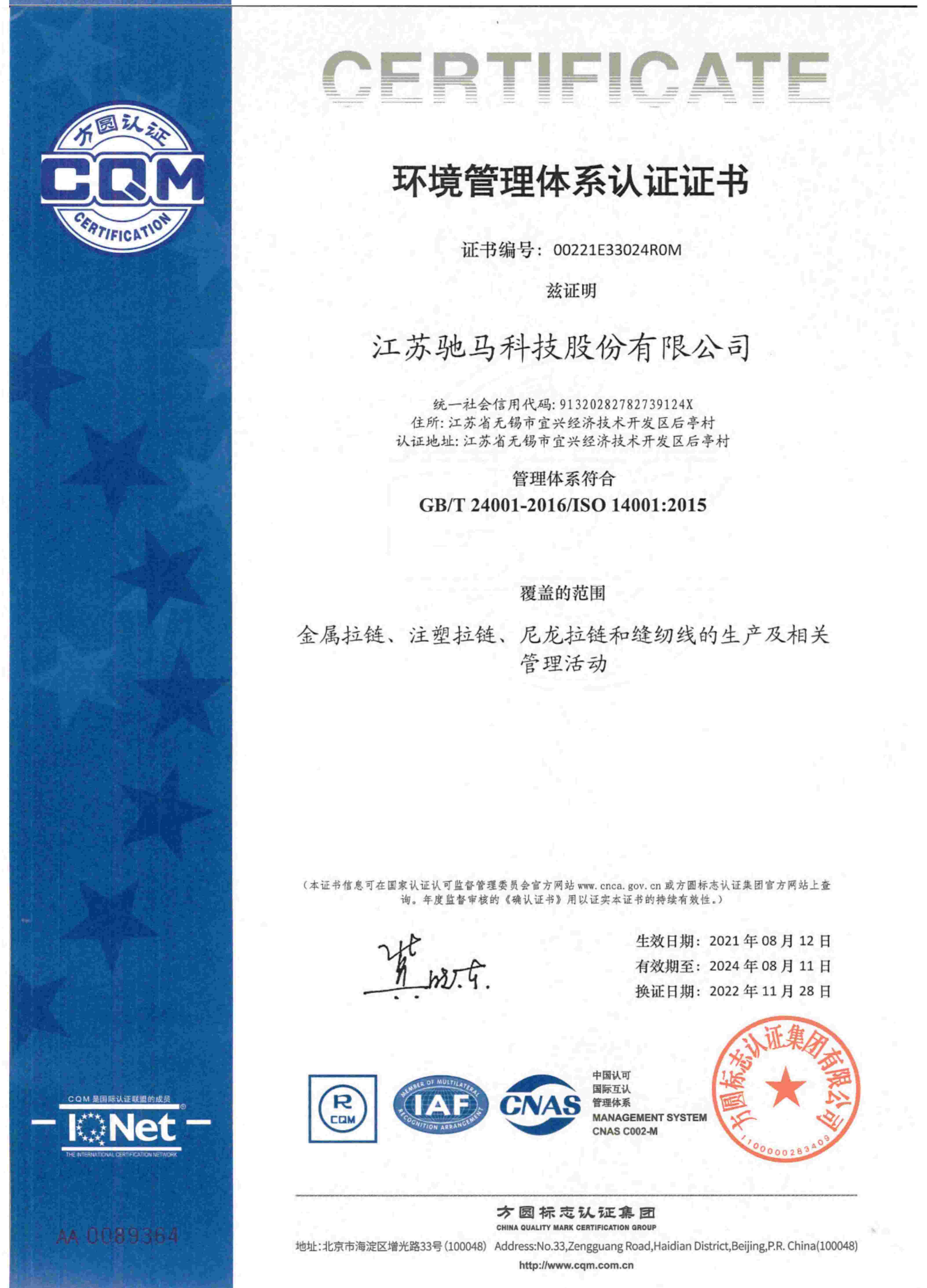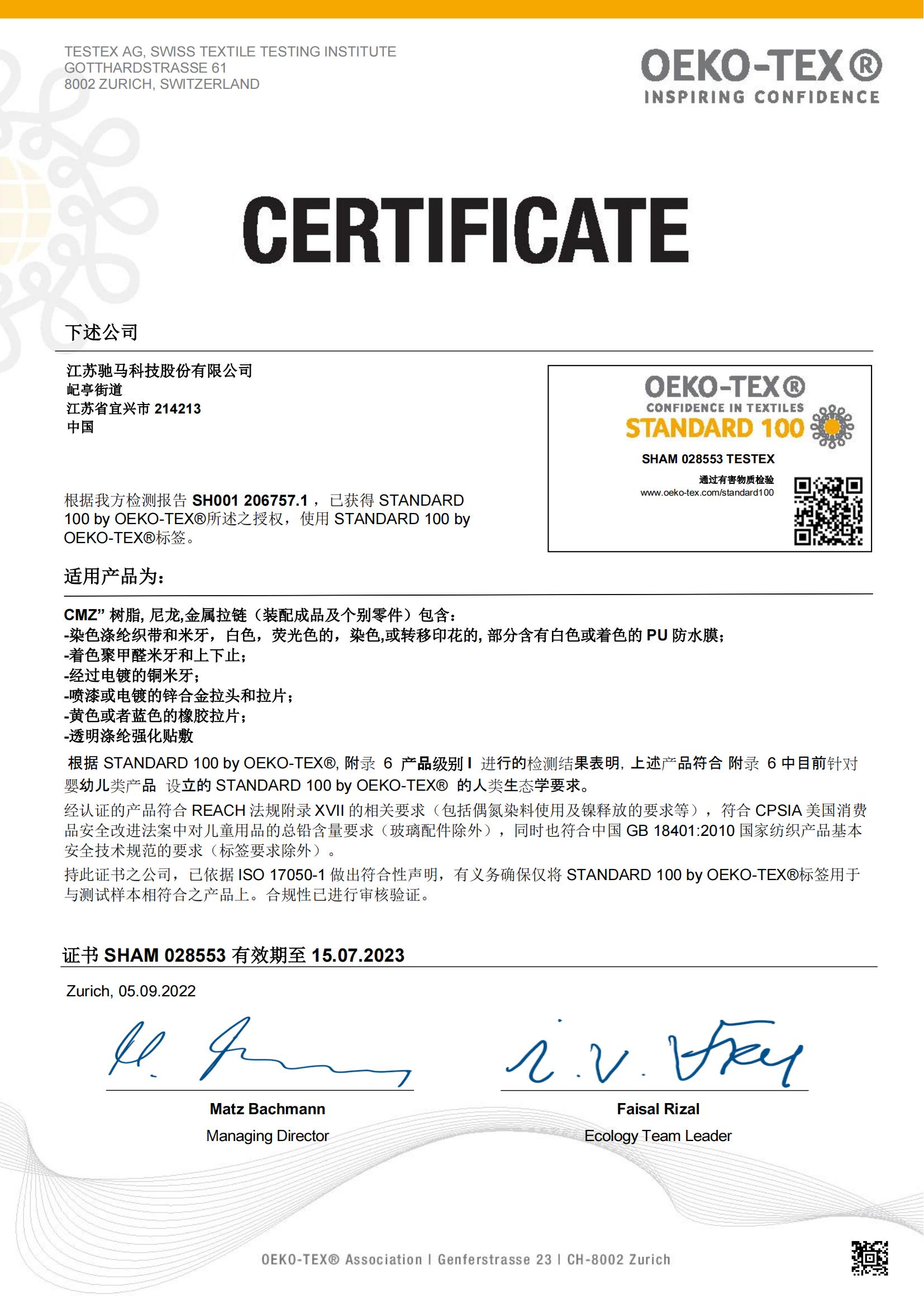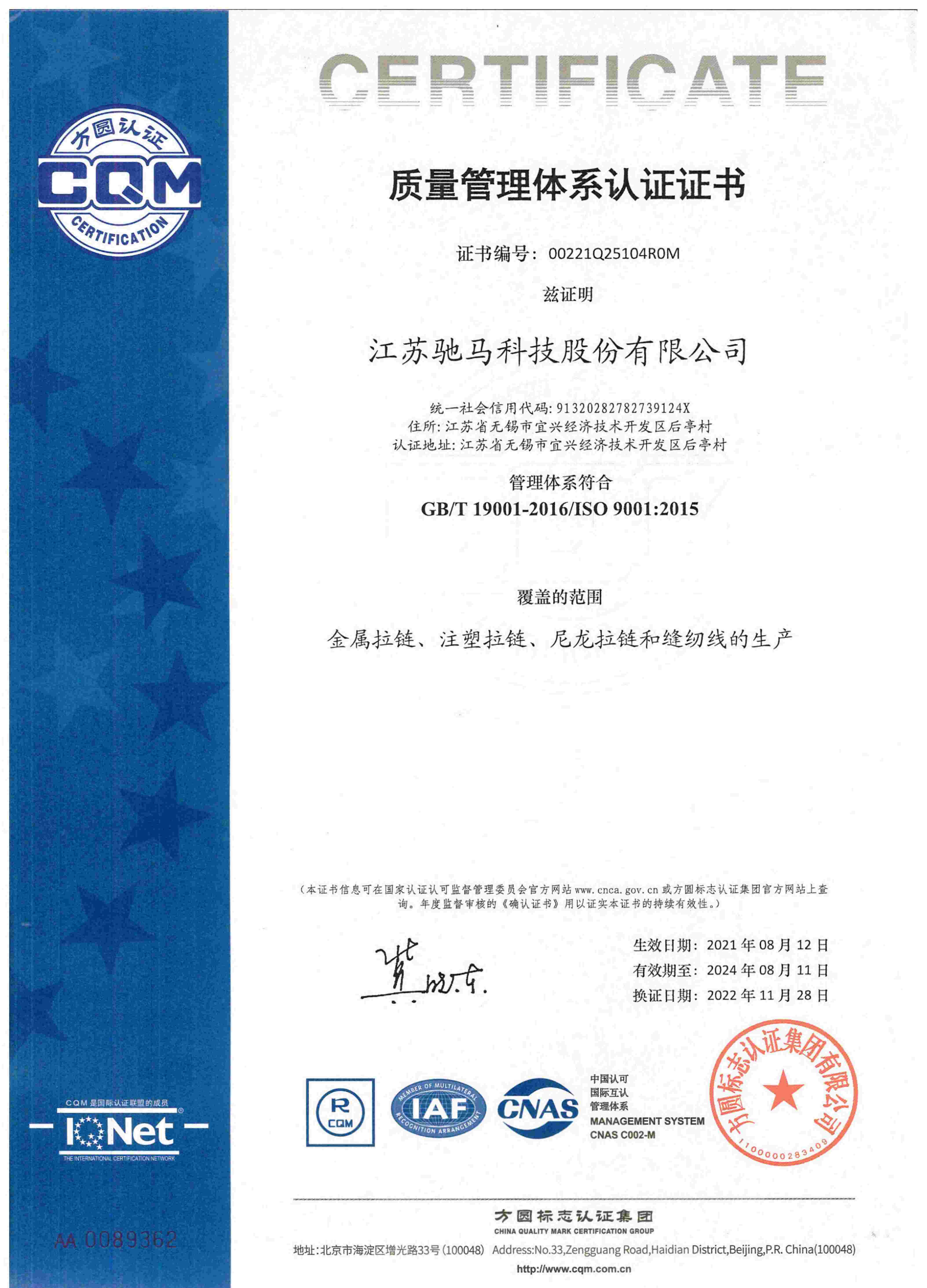 江蘇省(馳馬)特種拉鏈工程技術研究中心,