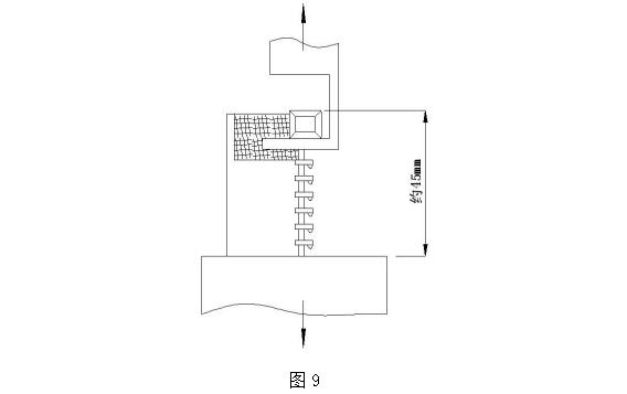 9.2.1.2、測試夾具主要尺寸:下部夾具寬 25mm,夾緊面齒形夾角 60°,節距 1.5mm,齒頂寬 0.2mm, 嚙合夾緊口到內齒 3mm 處加工成低于齒面 0.5mm 的平面;上夾具為鉗口,端部折彎 90°,嚙合口后空余約 5mm 滿足鏈牙點高要求。