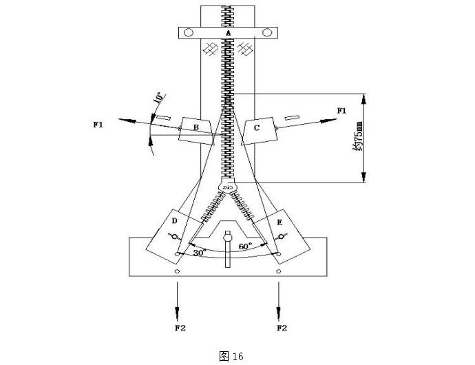 22.2.2.5、松開 A 固定點(diǎn),將拉鏈尾端向上拉起使得固定銷落于平衡板孔中間,然后將 A 點(diǎn)夾緊(此時(shí)目測(cè) D、E 點(diǎn)在同一水平線上)。