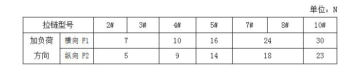 22.2.2.8、不同規(guī)格拉鏈,分別在其橫向和縱向按規(guī)定要求加負(fù)荷。